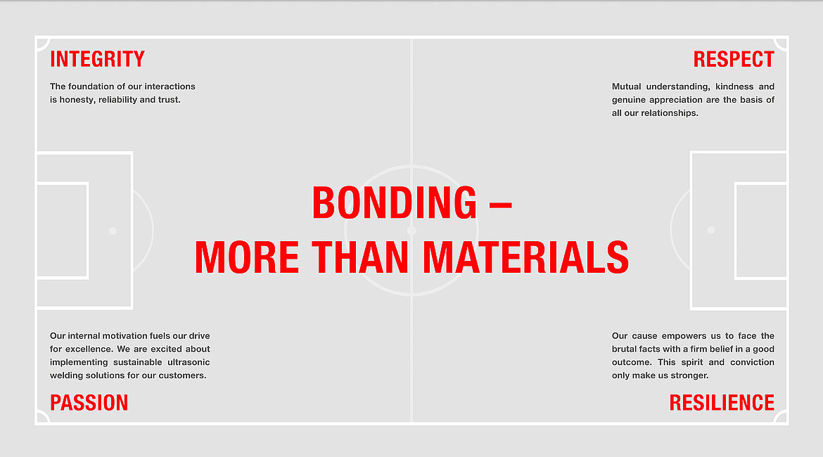 BONDING – MORE THAN MATERIALS,这是我们的核心价值观,将我们汇聚到一起,并鞭策我们做好每一份日常工作。这就是客户信赖我们的原因。这就是我们获得市场青睐的理由。