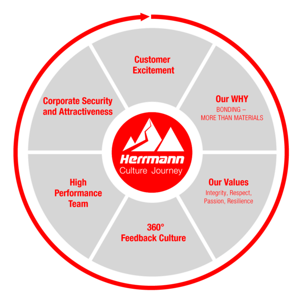 Herrmann(海尔曼)与众不同的原因是什么?我们前进的动力是什么?我们不仅仅从事材料接合 工作,更重要的是汇聚各类相关人士。 从客户、合作伙伴和供应商 到员工及其家人,再到我们的社区,我们希望将所有与我们接触的人聚集在一起。